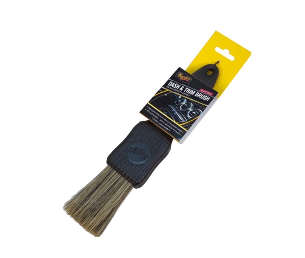 The Meguiar's Dash & Trim Interior Detailing Brush cleans vents and trim with adjustable bristles.