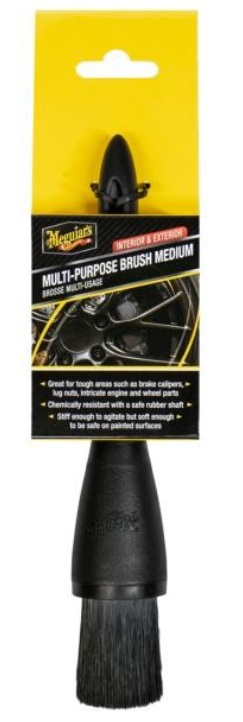 The Meguiar’s Multi-Purpose Brush Medium features soft bristles for safe interior and exterior cleaning. Perfect for brake calipers, wheel parts, and vents. Pair with a cleaner like Sonax Glanzshampoo.