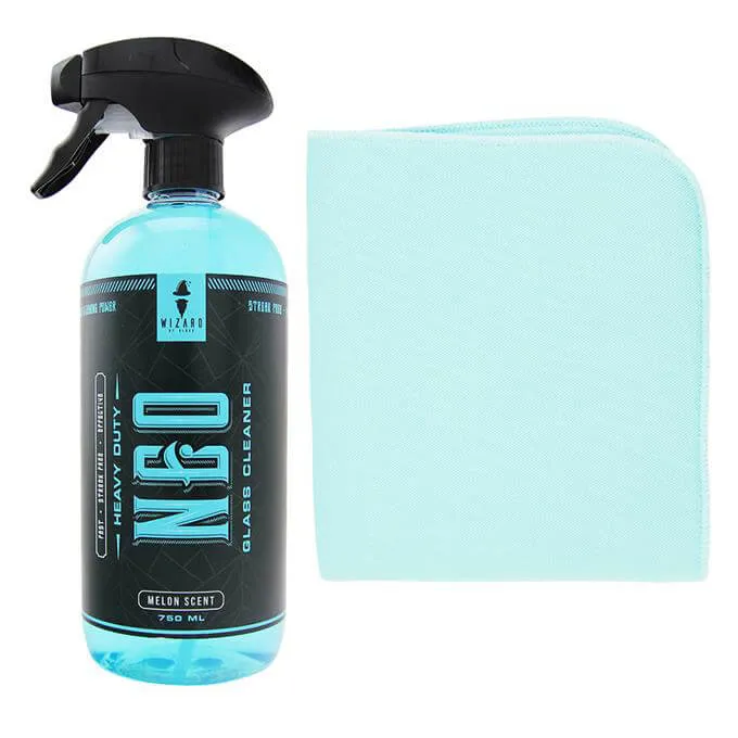 Clean glass with Wizard of Gloss Glasreinigungs Set. This set includes a glass cleaner and microfiber towels for a streak-free finish on windows and mirrors. Perfect for car glass, it ensures a professional-grade clean for better visibility.