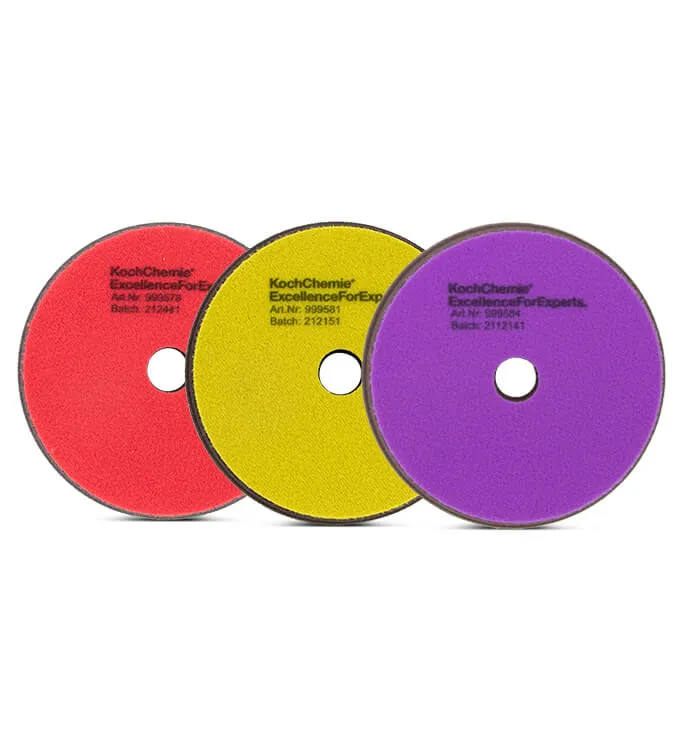 Koch Chemie Polierschwamm 3er Set 125mm includes three 125mm polishing pads. This set ensures a smooth finish for various polishing tasks, ideal for professional car detailing. Perfect for achieving a glossy result.