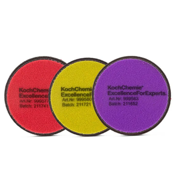 Koch Chemie Polierschwamm 3er Set 75mm includes three 75mm polishing pads. This set ensures a smooth finish for various polishing tasks, ideal for professional car detailing. Perfect for achieving a glossy, scratch-free result.