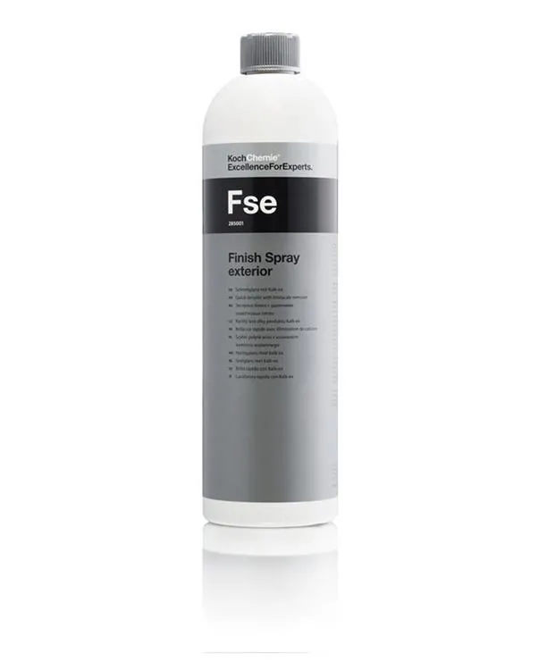 Koch Chemie Finish Spray Exterior FSE 1L enhances shine and protects car paint. This 1L spray removes light dirt and adds a glossy finish, perfect for quick detailing. Ideal for maintaining a polished look.